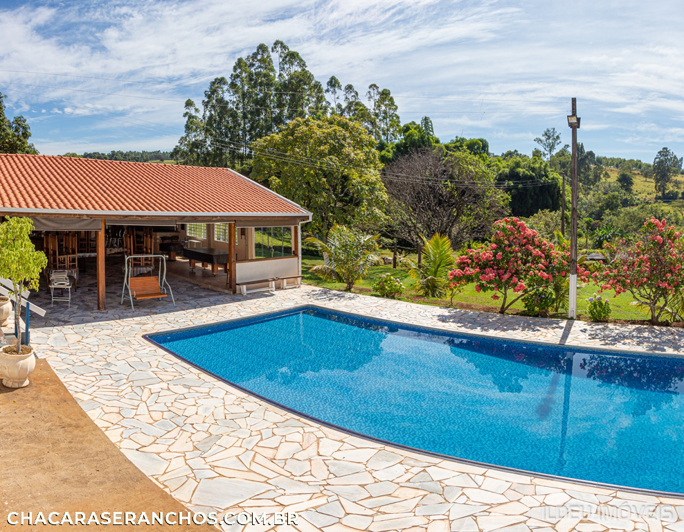 COM 07 DORMS., 03 WC SOCIAIS, SALA, COZINHA AMPLA. ÁREA DE LAZER COM PISCINA ADULTA, CHURRASQUEIRA ALVENARIA, CAMPO DE FUTEBOL, MESA DE BILHAR, MESA DE CARTEADO. SALÃO COM CAPACIDADE PARA 100 PESSOAS COM 02 WC SOCIAIS ACOMODAÇÕES 25 PESSOAS CAMA.