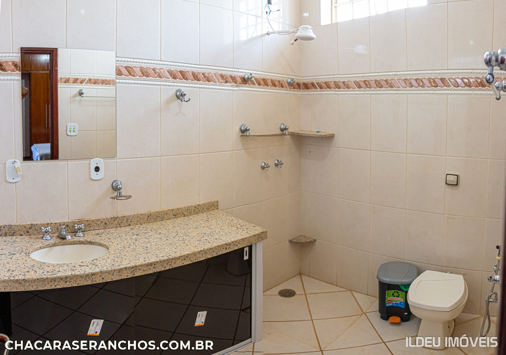 CASA COM 05 DORMS., SENDO 01 SUÍTE, 03 WC SOCIAL, SALA DE ESTAR E JANTAR, COZINHA AMPLA. ÁREA DE LAZER COM PISCINA ADULTA E INFANTIL, CHURRASQUEIRA ALVENARIA, CAMPO DE FUTEBOL, MESA DE BILHAR, PLAYGROUND. SALÃO PARA 300 PESSOAS. ACOMODAÇÕES 20 PESSOAS ENTRE CAMA E COLCHÃO.