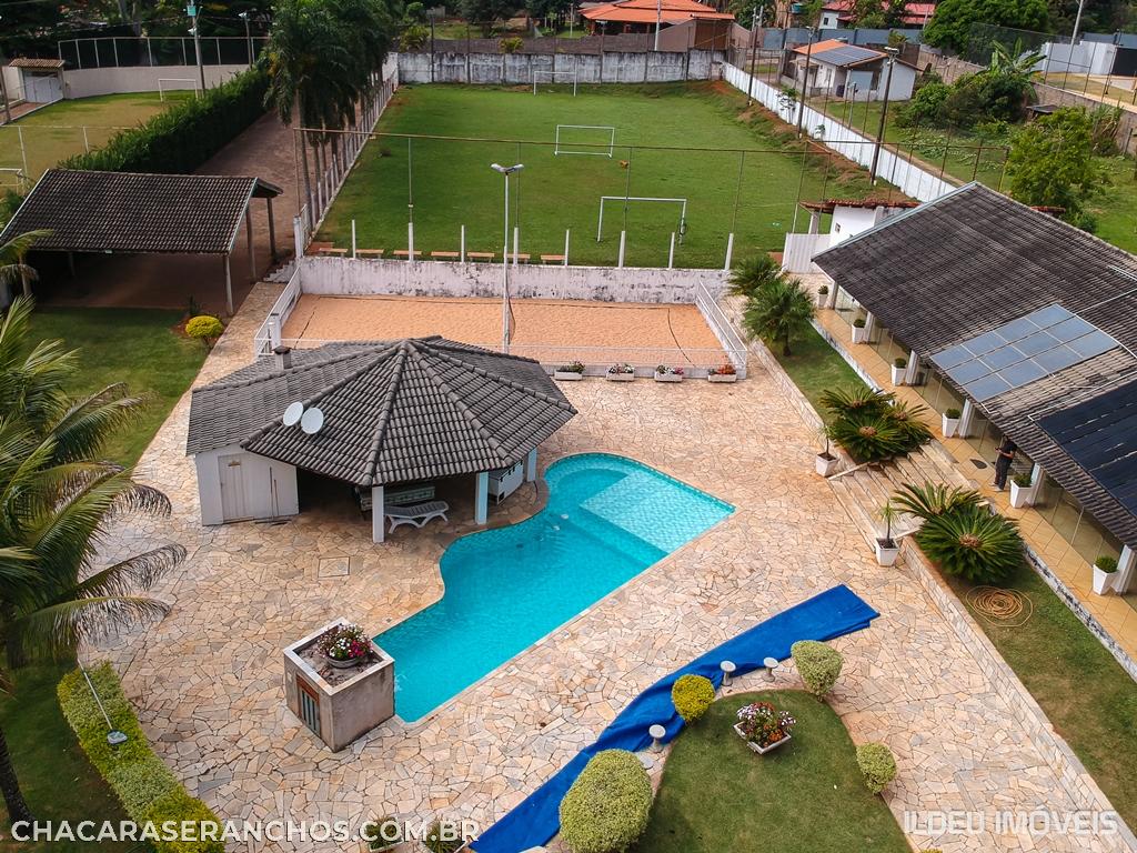 CASA C/ 04 DORMS, SENDO 04 SUÍTES MAIS 01 WC SOCIAL, SALA, COZINHA. ÁREA DE LAZER COM PISCINA ADULTA, CHURRASQUEIRA ALVENARIA, BAR MOLHADO, MESA DE BILHAR, CAMPO DE FUTEBOL E QUADRA DE AREIA. SALÃO CAPACIDADE P/ 60 PESSOAS ACOMODAÇÕES 16 PESSOAS ENTRE CAMA E COLCHÃO.