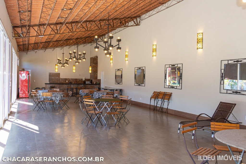 ÁREA DE LAZER SALÃO CAPACIDADE 100 PESSOAS, COM 02 DORMS, SENDO 01 SUÍTE, COZINHA COMPLETA COM FREEZER, FOGÃO INDUSTRIAL, CHURRASQUEIRA. ÁREA DE LAZER COM PISCINA ADULTA, AQUECIDA, 03 WC SOCIAL E GRAMADO EXTERNO.