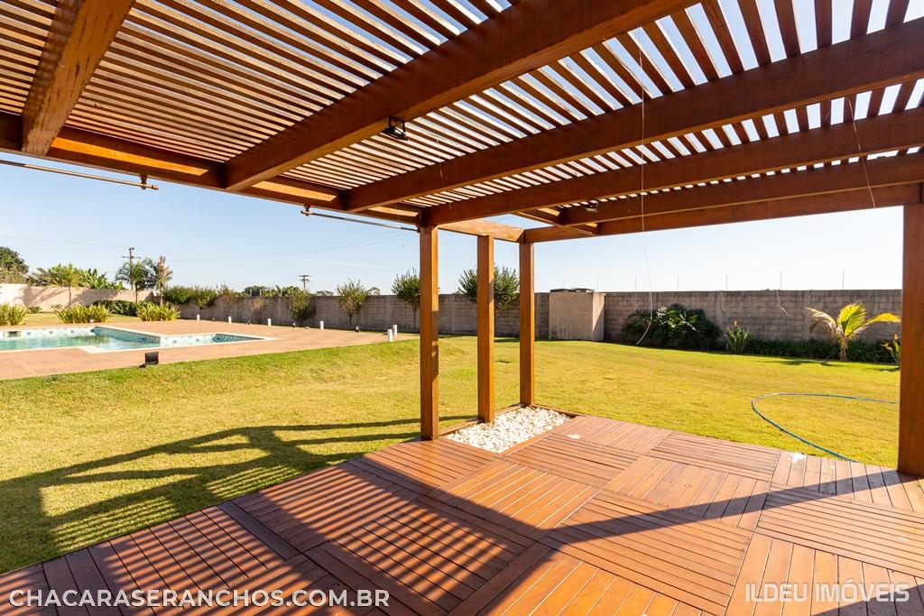 CASA COM 03 DORMS, SENDO 03 SUÍTES , LAVABO, SALA DOIS AMBIENTES. ÁREA DE LAZER COM PISCINA ADULTA, CHURRASQUEIRA ALVENARIA, SALÃO COM CAPACIDADE P/ 50 PESSOAS, ACOMODAÇÃO 20 PESSOAS EM CAMA E 10 COLCHÕES A VULSO.