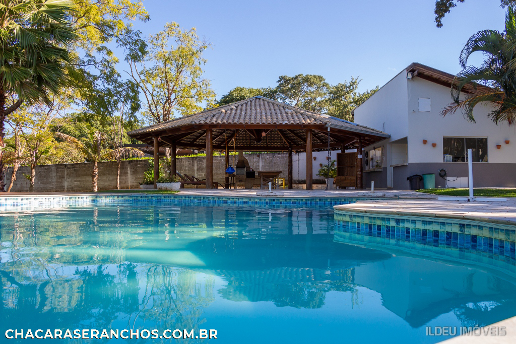 COM 05 SUÍTES SENDO 05 C/ AR CONDICIONADO, SALA, COZINHA, VARANDA. ÁREA DE LAZER COM PISCINA ADULTA, QUIOSQUE GRANDE COM ÁREA PARA CHURRASCO COM COZINHA. ACOMODAÇÕES 20 PESSOAS EM CAMA