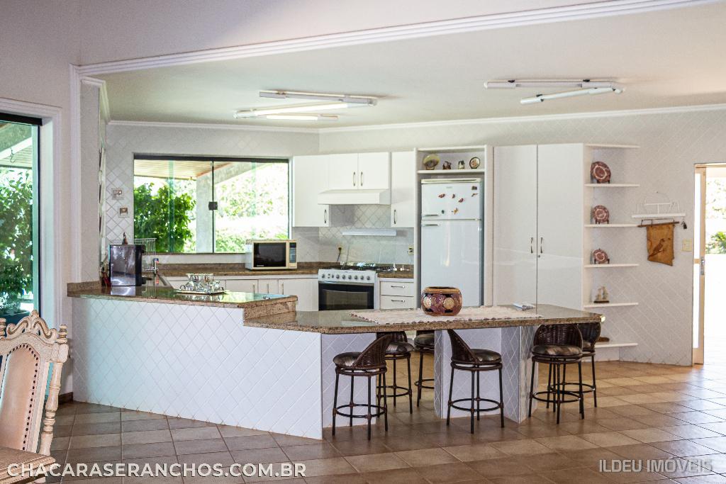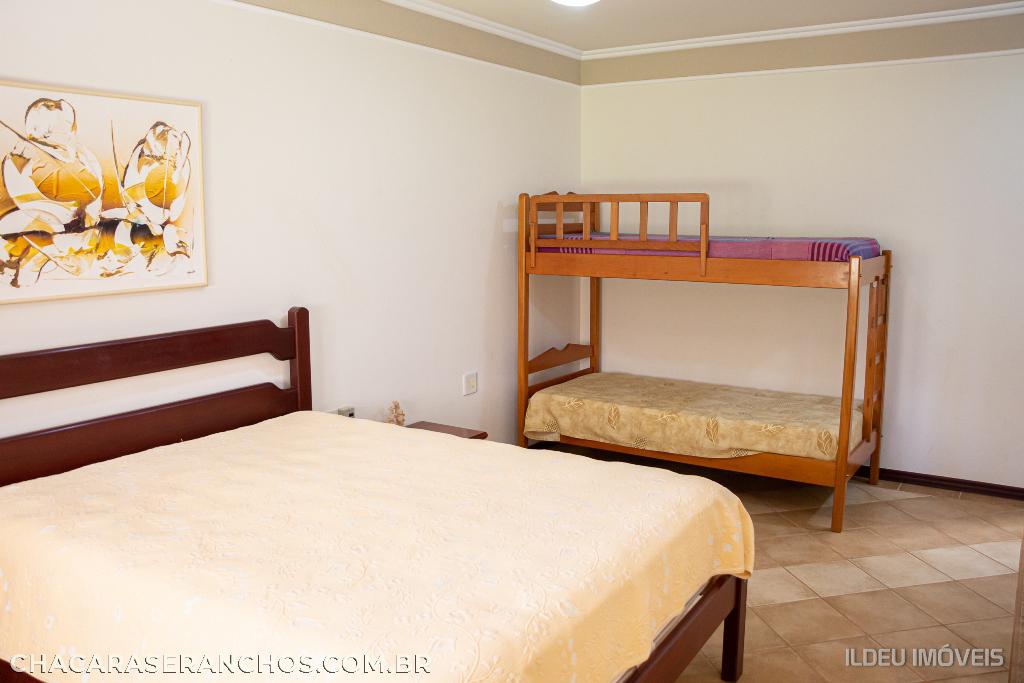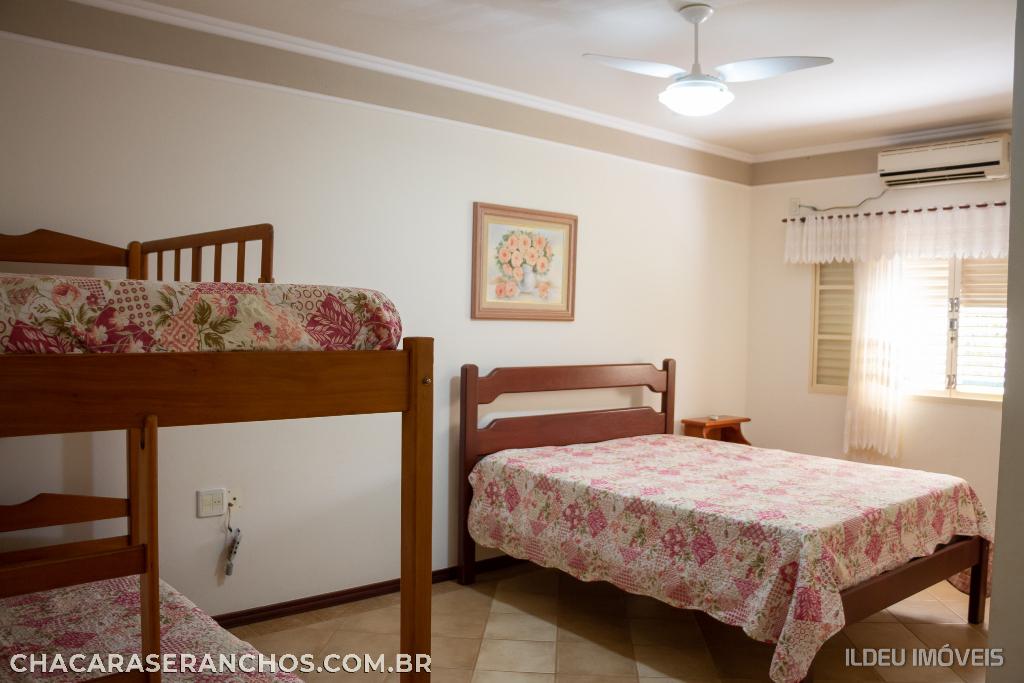 COM 05 SUITES, (5 COM AR COND.), VENTILADOR DE TETO NOS DEMIAS, + 02 WC SOCIAIS, COZINHA, SALA JANTAR, SALA TV. QUIOSQUE COM ÁREA DE CHURRASQUEIRA E CERVEJEIRA, PISCINA ADULTA COM HIDRO, MESA DE BILHAR, PESQUEIRO COM DECK, QUADRA PETÉCA, CAMPO FUTEBOL. ACOMODAÇÕES 21 PESSOAS EM CAMA.