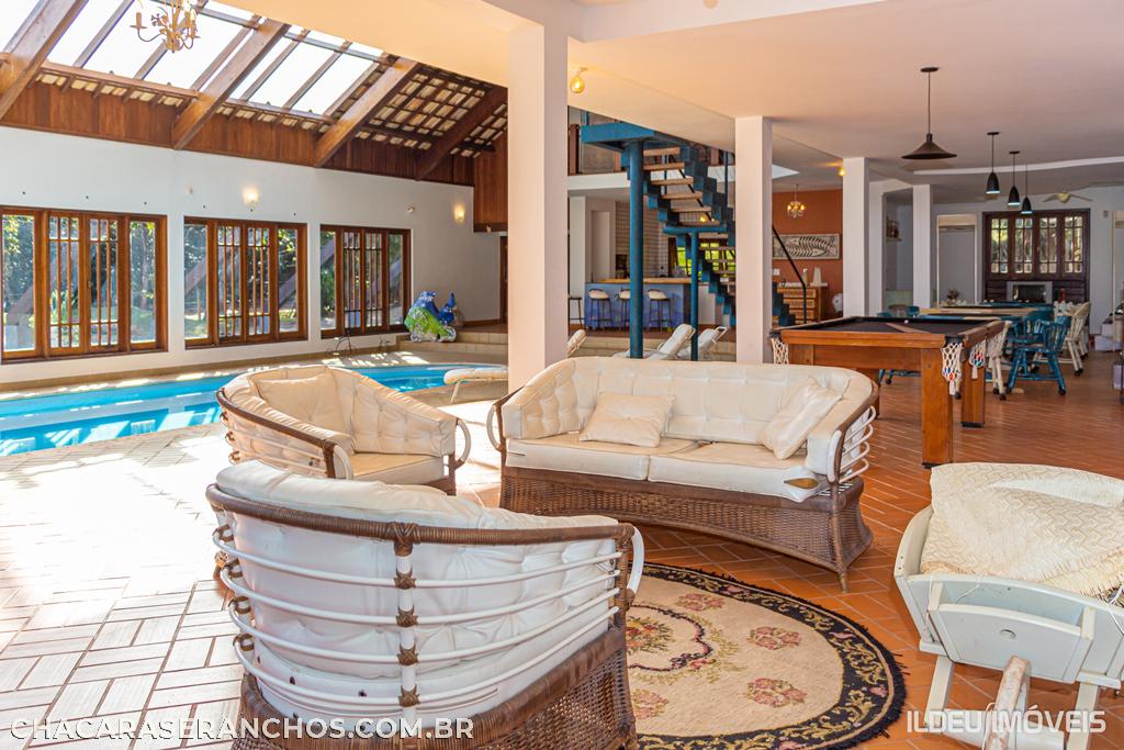 COM 04 DORMS., SENDO 01 SUÍTE + 02 WC SOCIAIS, COZINHA, QUIOSQUE COM ÁREA DE CHURRASCO,PISCINA ADULTA, DECK. ACOMODAÇÕES 15 PESSOAS EM CAMA.