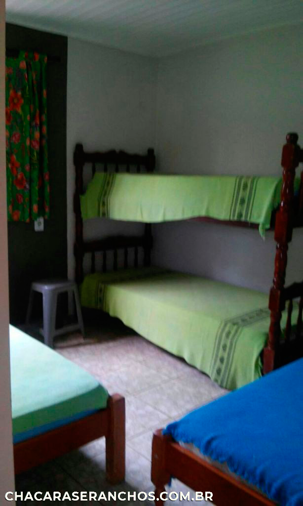 COM 04 DORMS, VENTILADOR DE TETO, SALA, COZINHA. ÁREA DE LAZER COM DOIS QUIOSQUES, PISCINA ADULTA, VARANDA COM ÁREA PARA CHURRASCO, COZINHA E WC SOCIAL. ACOMODAÇÕES 20 PESSOAS EM CAMA.